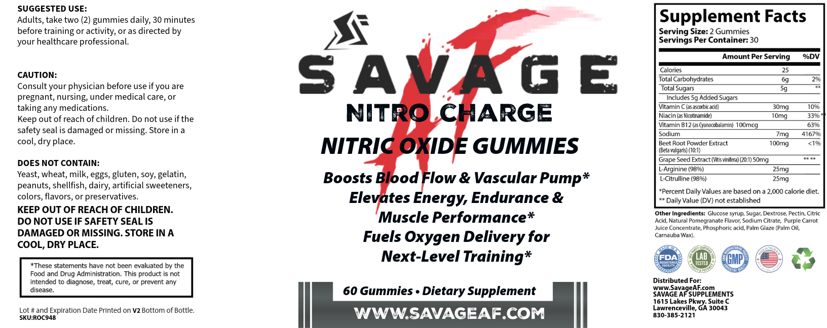 Turn every workout into a blood-pumping, vein-splitting, oxygen-flooded training session. NITRO CHARGE is a delicious nitric oxide gummy formula engineered to boost blood flow, enhance endurance, and elevate your overall muscle performance — all in a fast-acting, easy-to-take chew.
