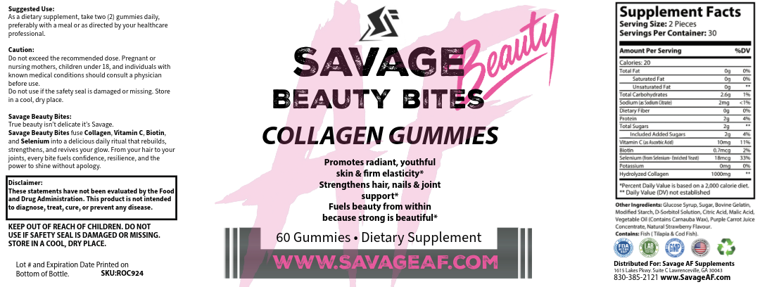 Beauty Bites™ Collagen Gummies turn your daily beauty routine into a delicious, powerhouse ritual that rebuilds, strengthens, and revives your glow from the inside out. Packed with Collagen, Vitamin C, Biotin, and Selenium, these gummies support youthful skin, stronger hair and nails, joint comfort, and overall vitality.